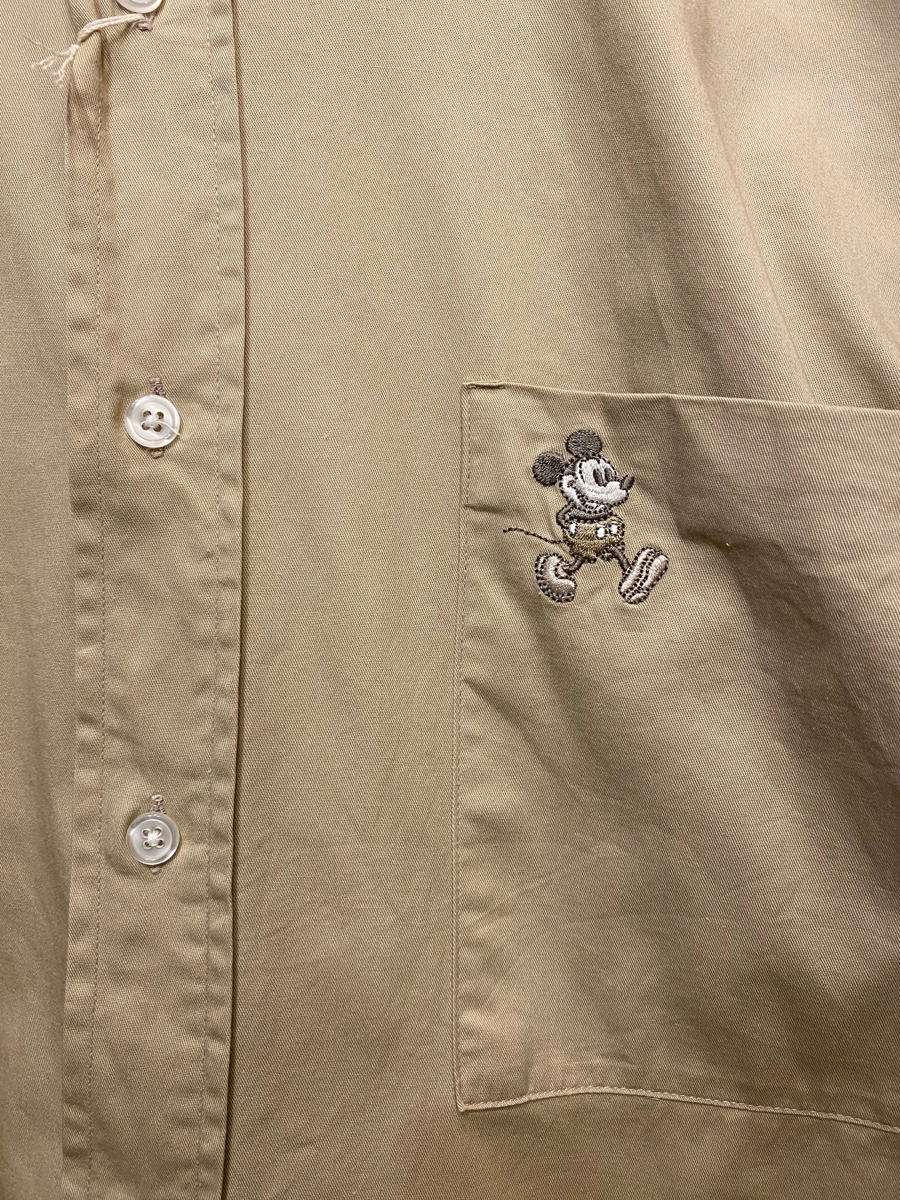 【XL相当】ミッキーさん パリのディズニー 刺繍入り ボタンダウンシャツ 無地シャツ