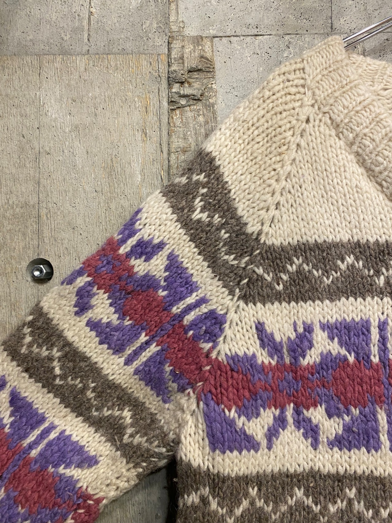 【XL相当】80s 手編みカーディガン エクアドル製 ウール