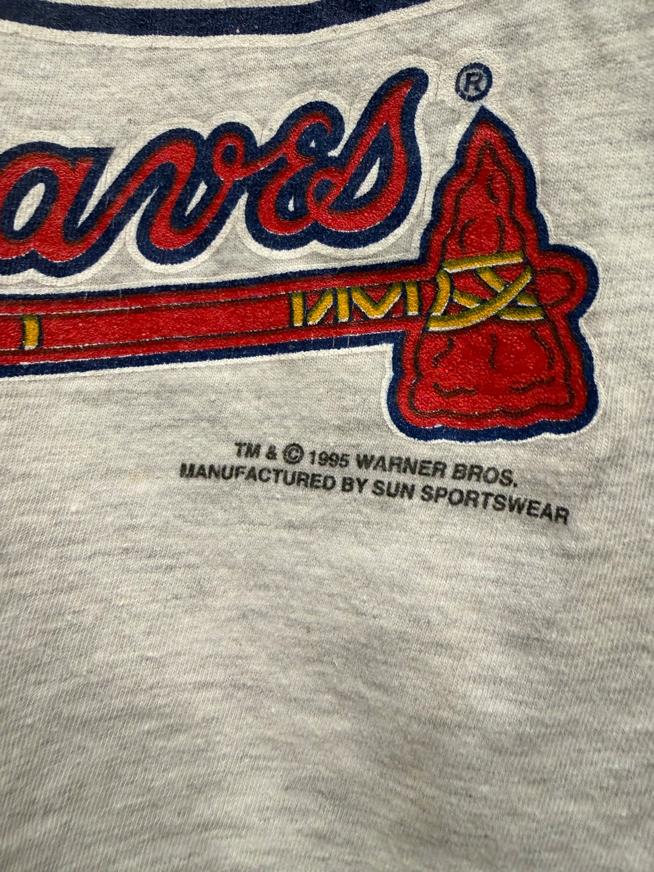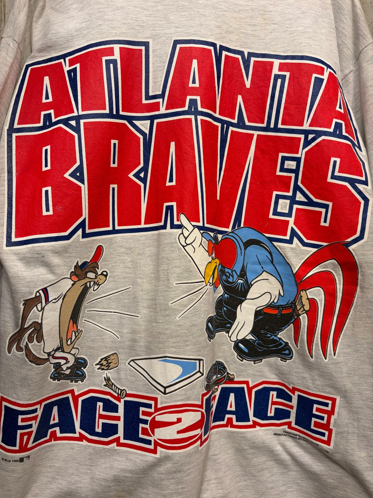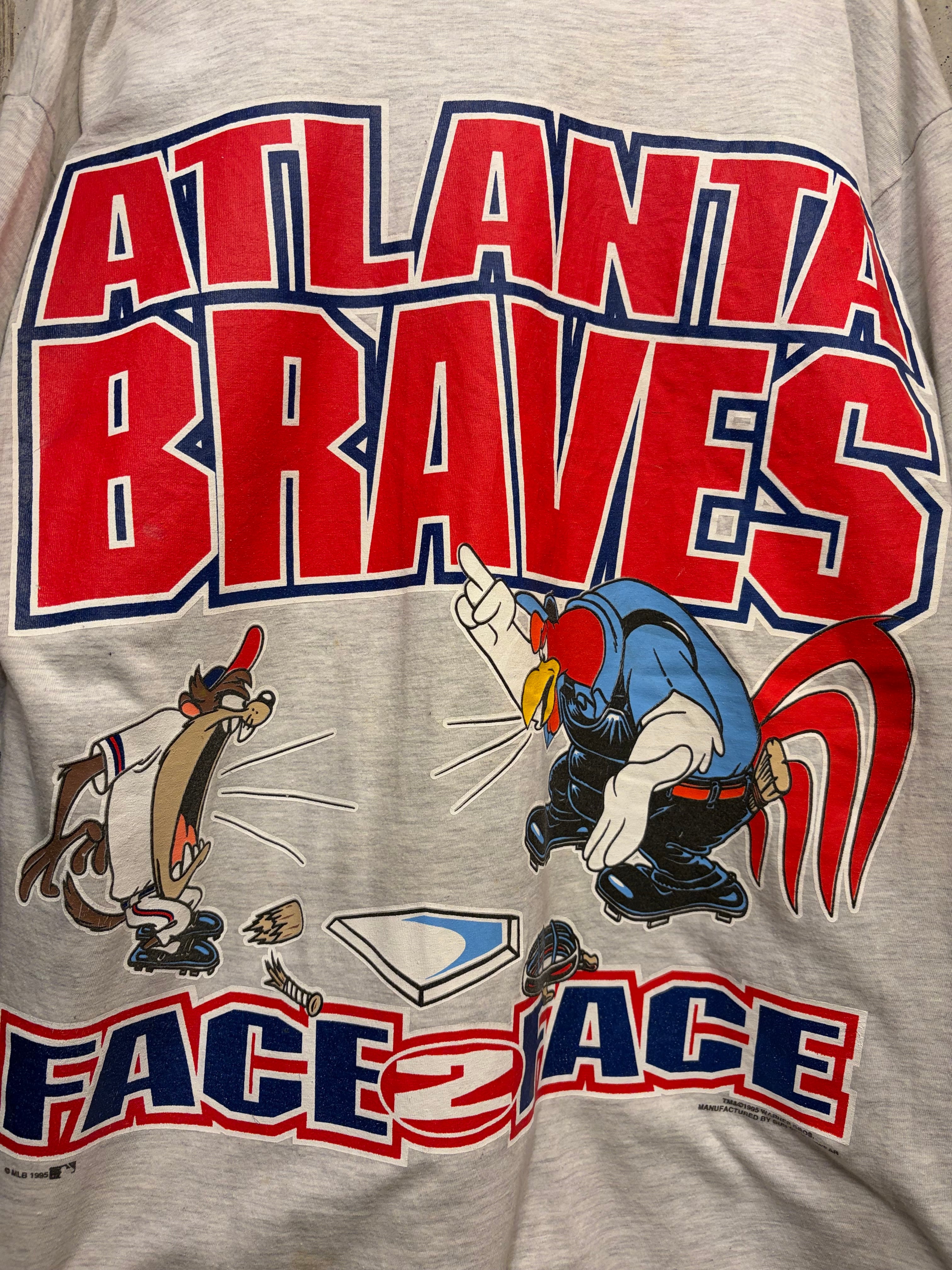 【L相当】95s アトランタブレーブス MLBとWBコラボ タズマニアンデビル キャラt スポーツt tシャツ 両面プリント