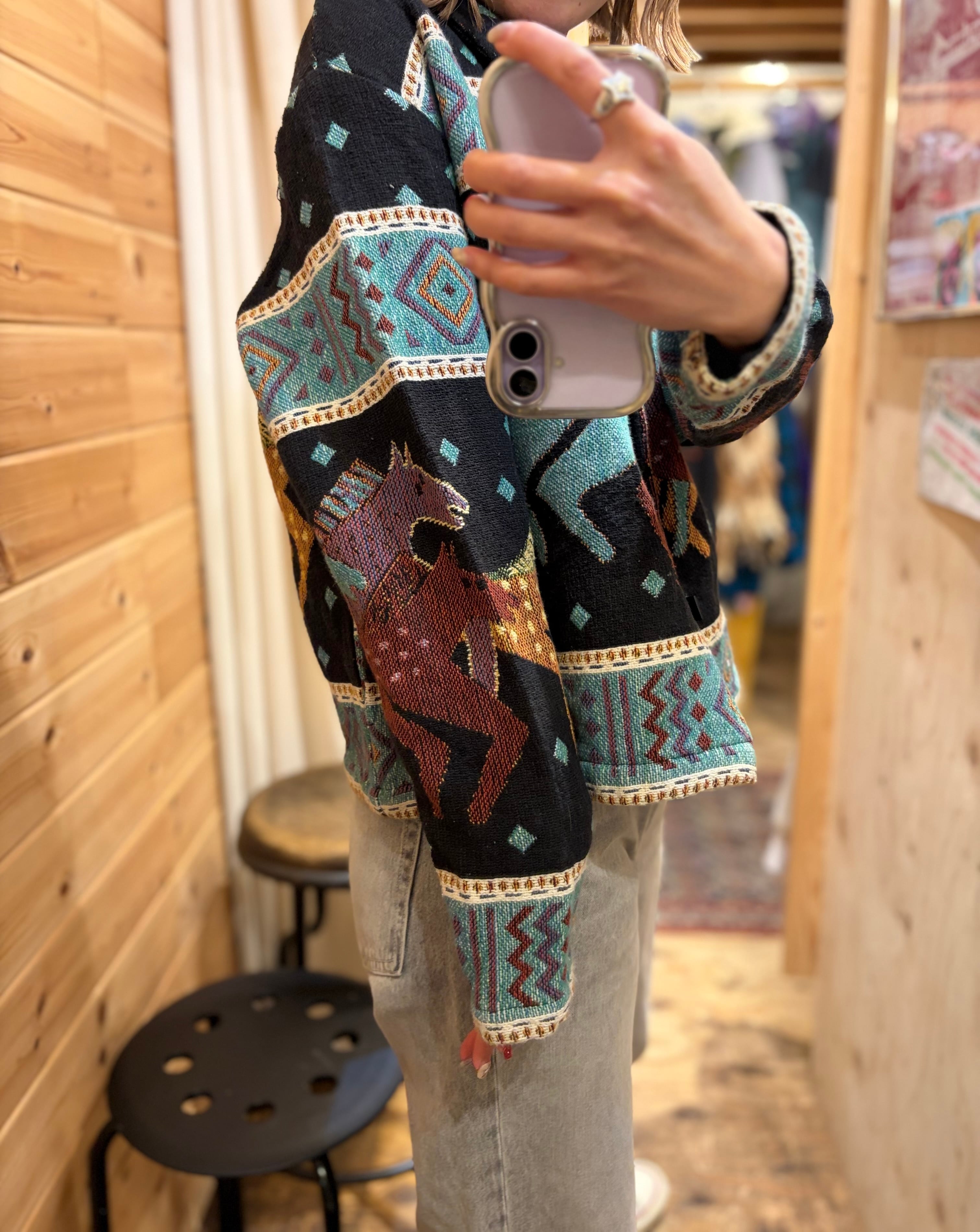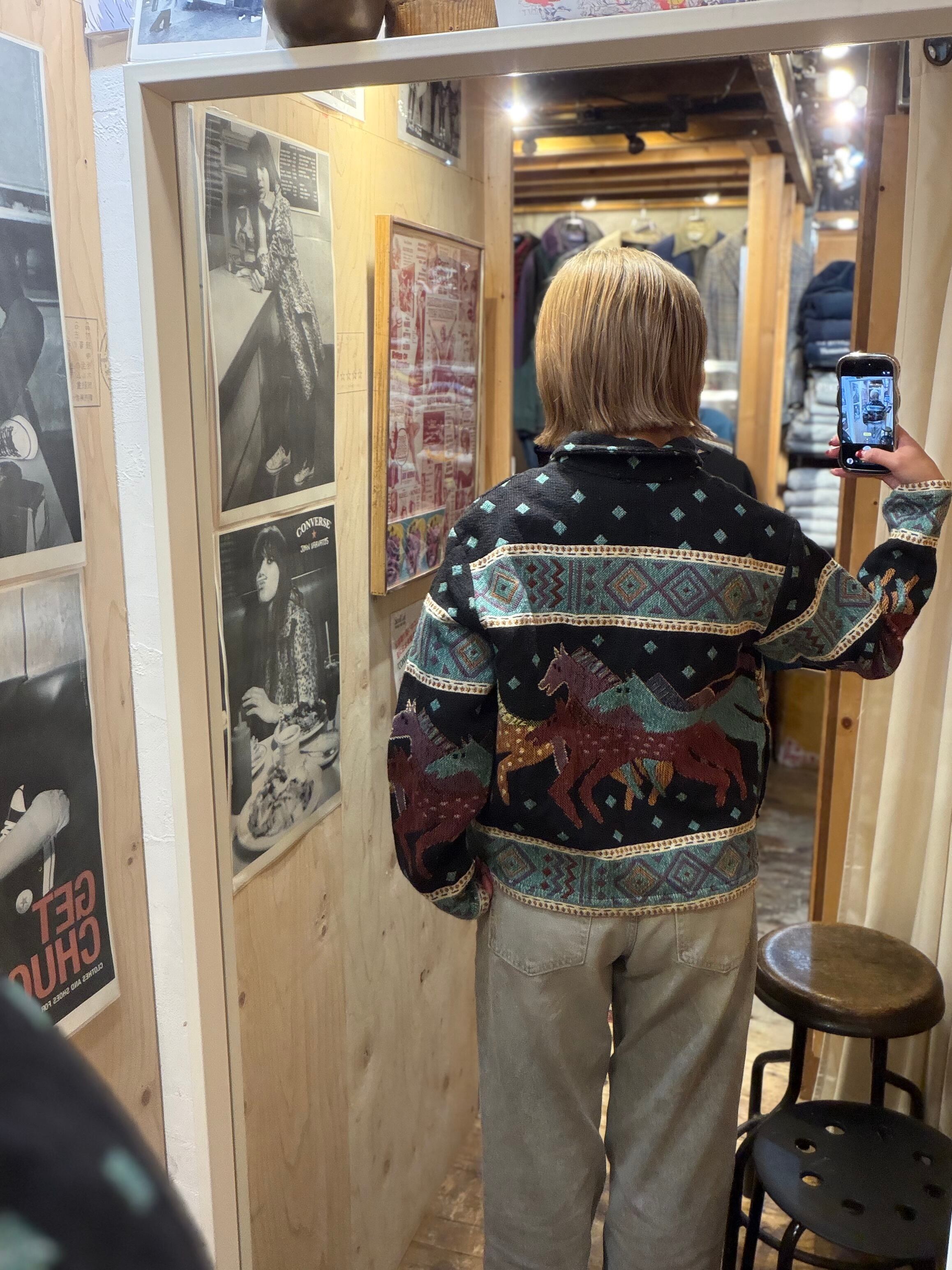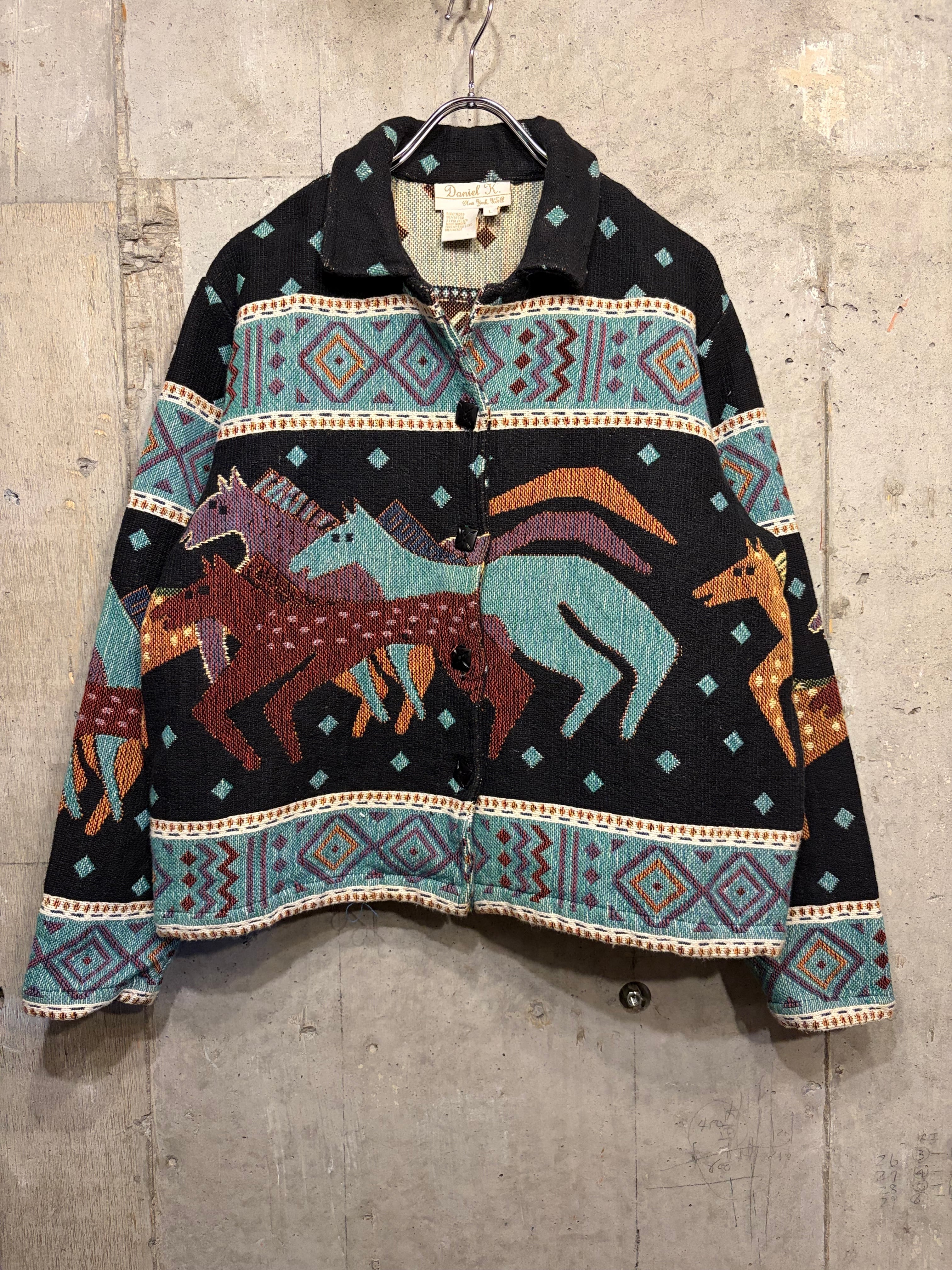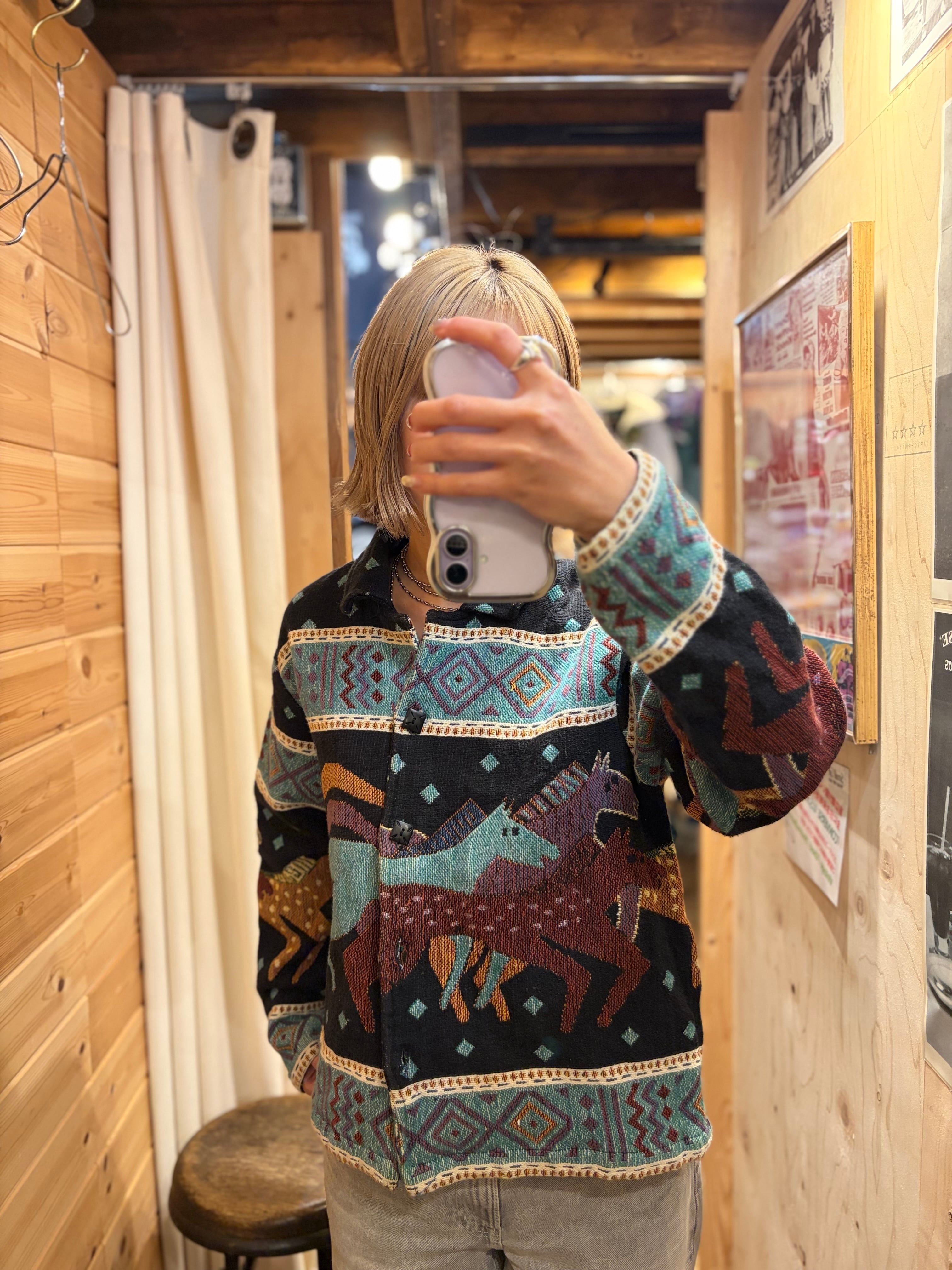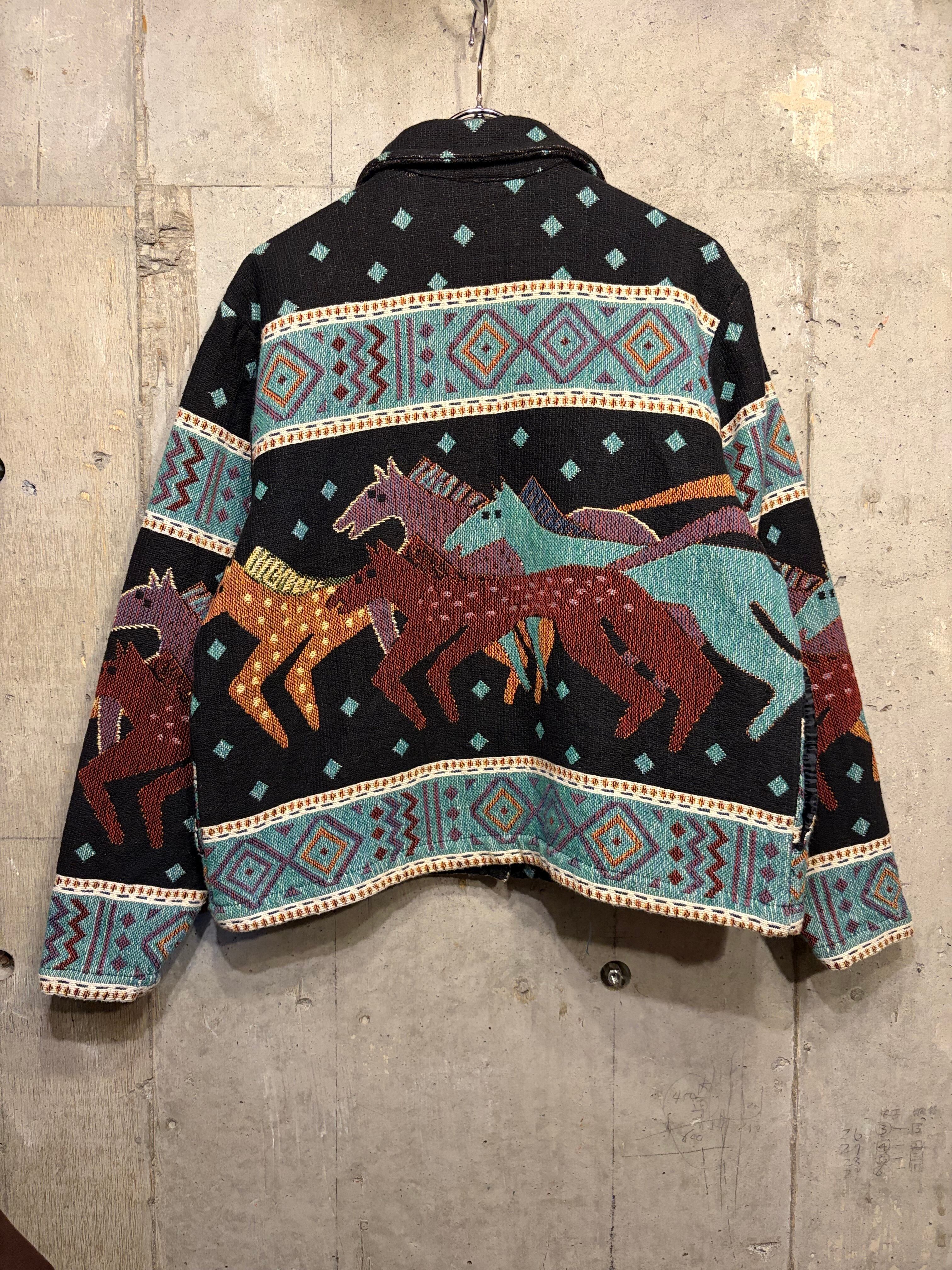 【L相当】お馬さん柄ジャケット 総柄 短丈