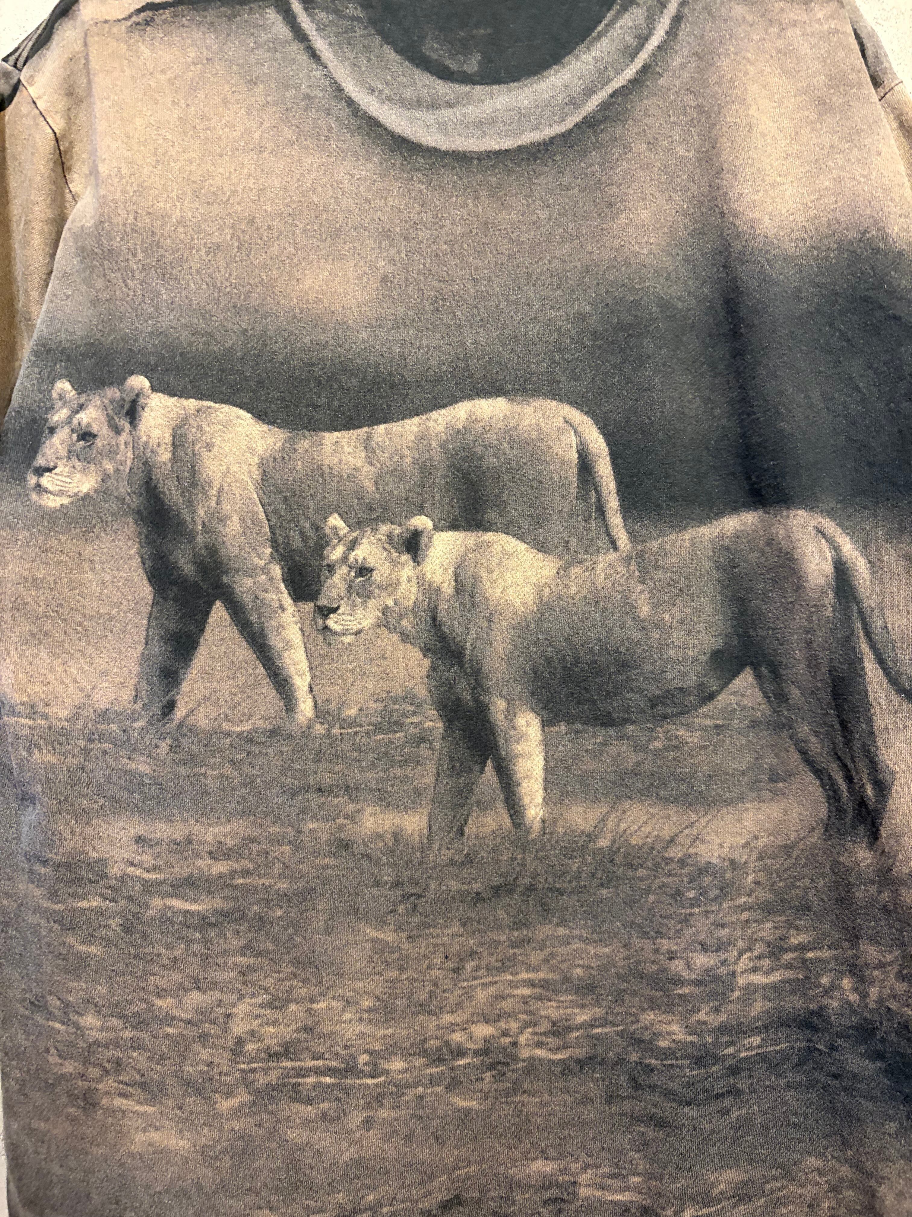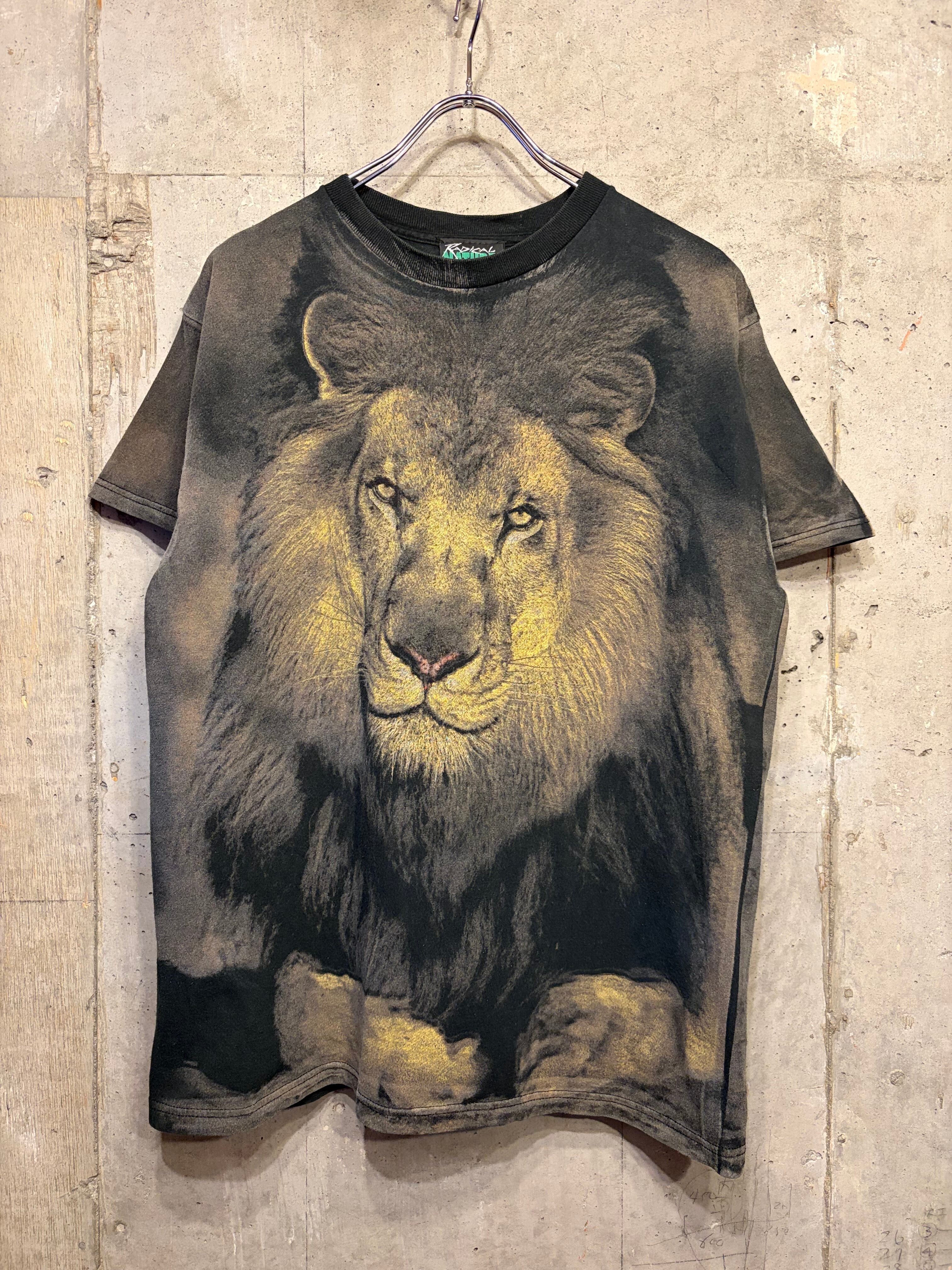 【L相当】両面ライオンさん ガォ〜 アニマル ネコ科 tシャツ