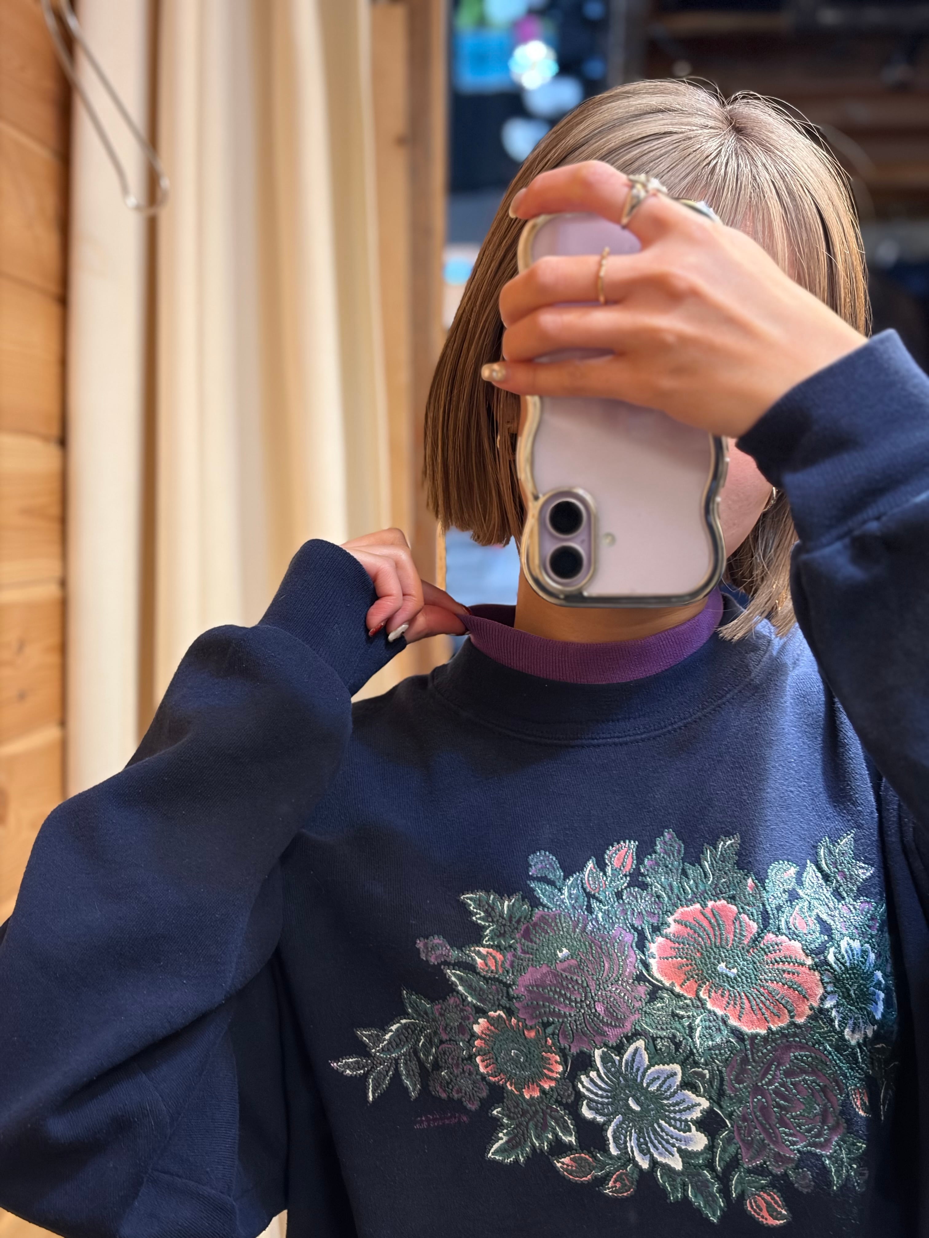 【小さめL相当】90年代 お花デザイン レトロ スウェット 古着