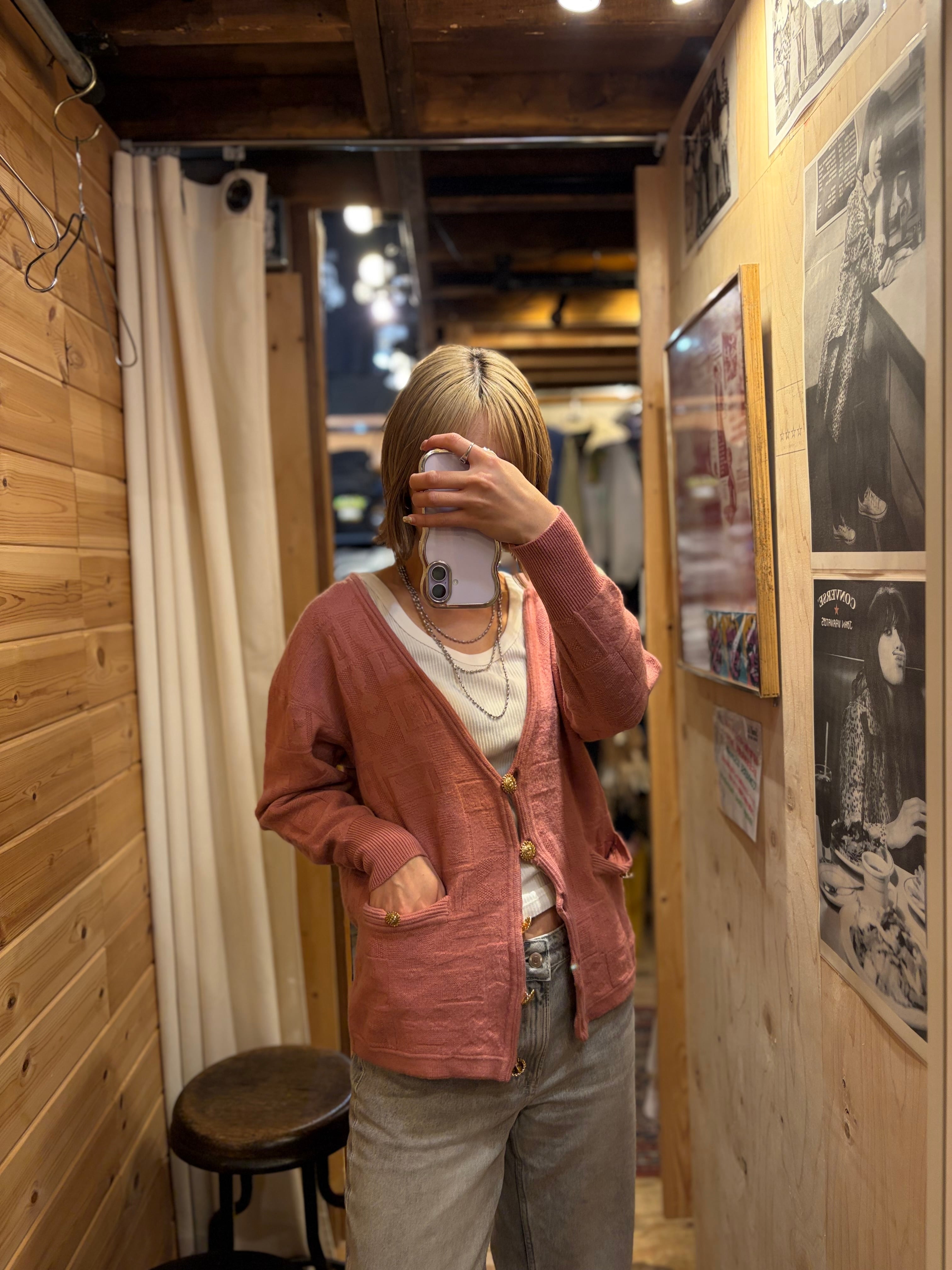 【M相当】カーディガン 90年代 レトロ ピンク