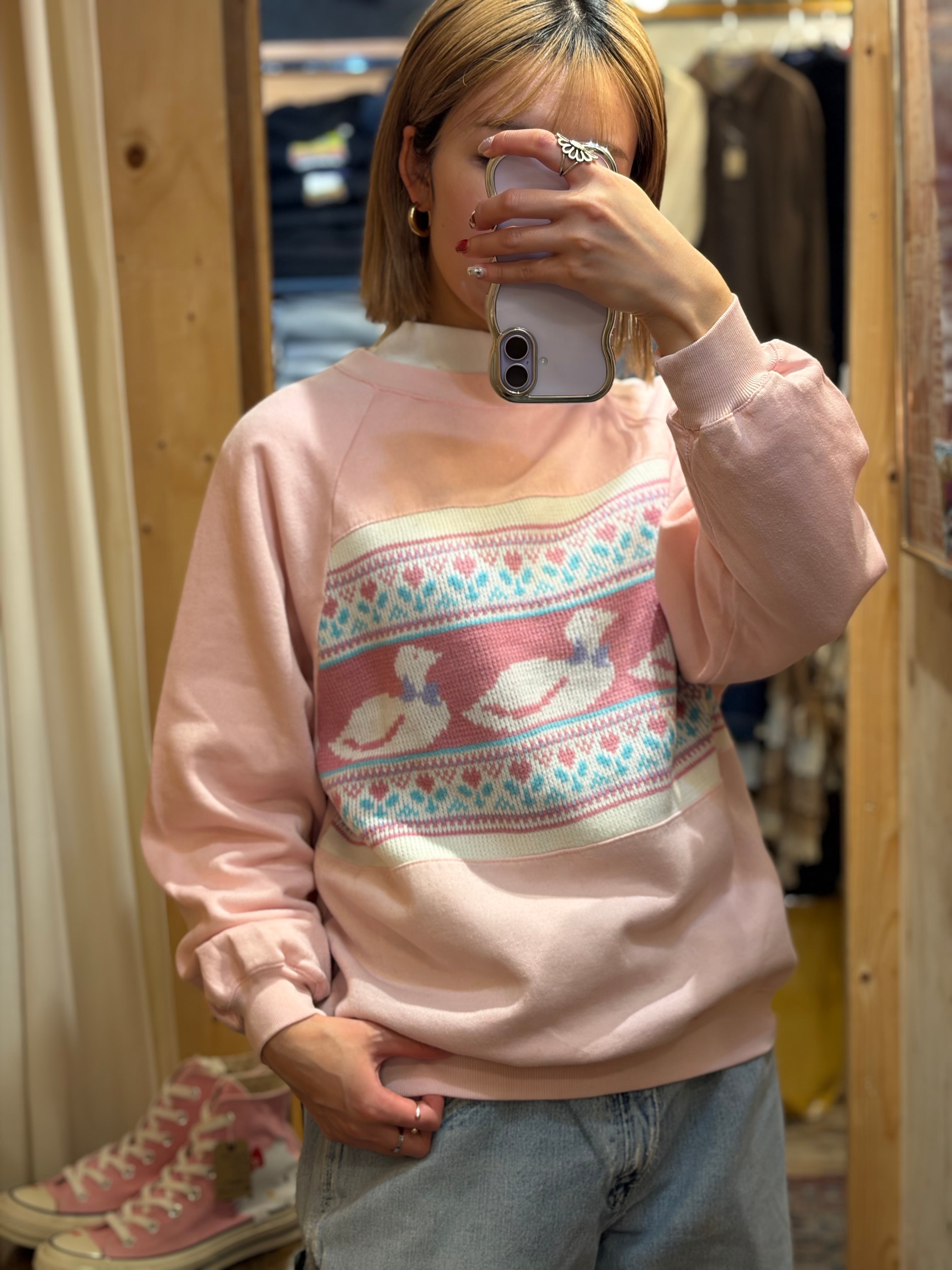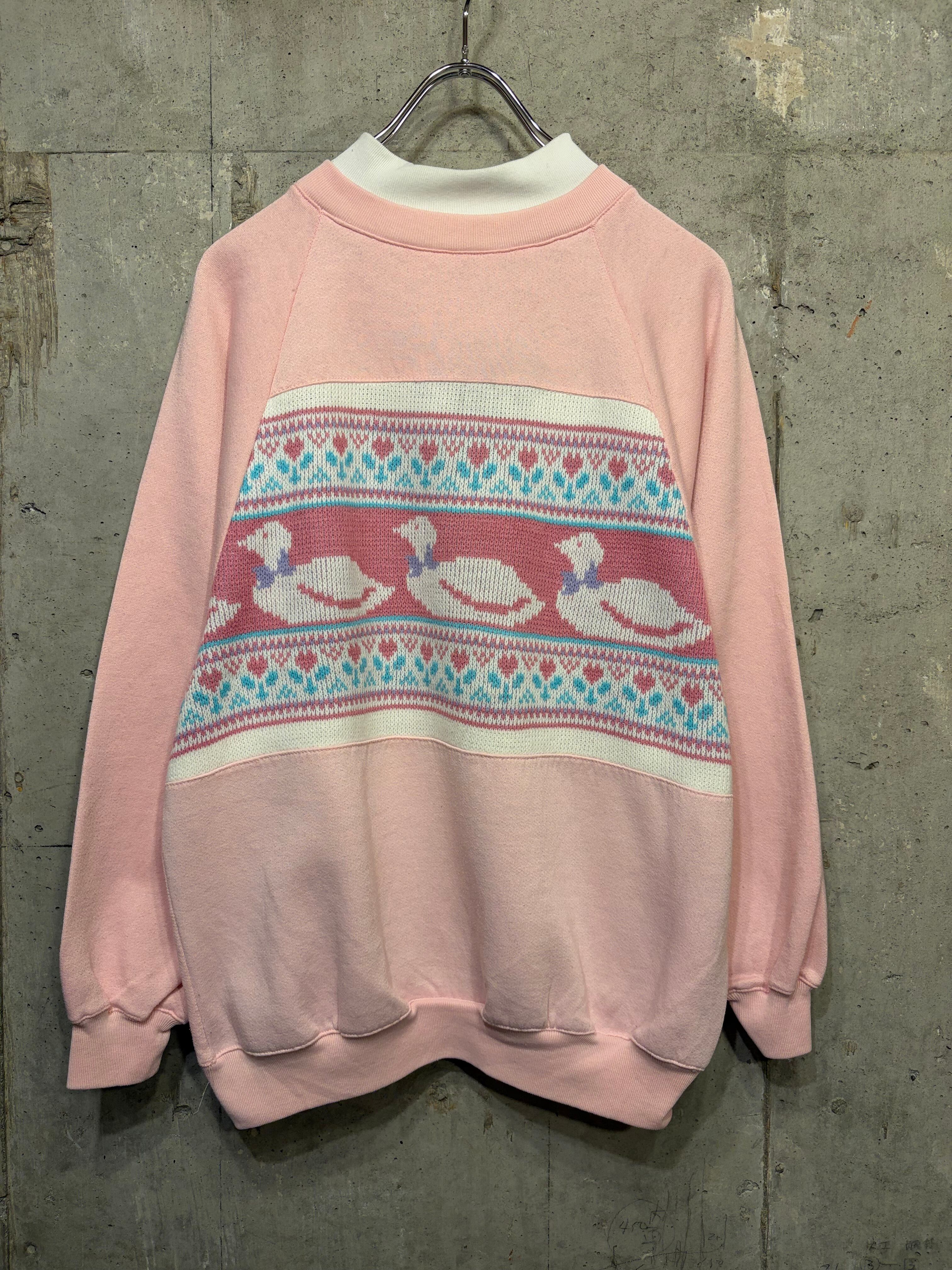 【L相当】カモ アニマル スウェット 古着 ニット生地切り替え