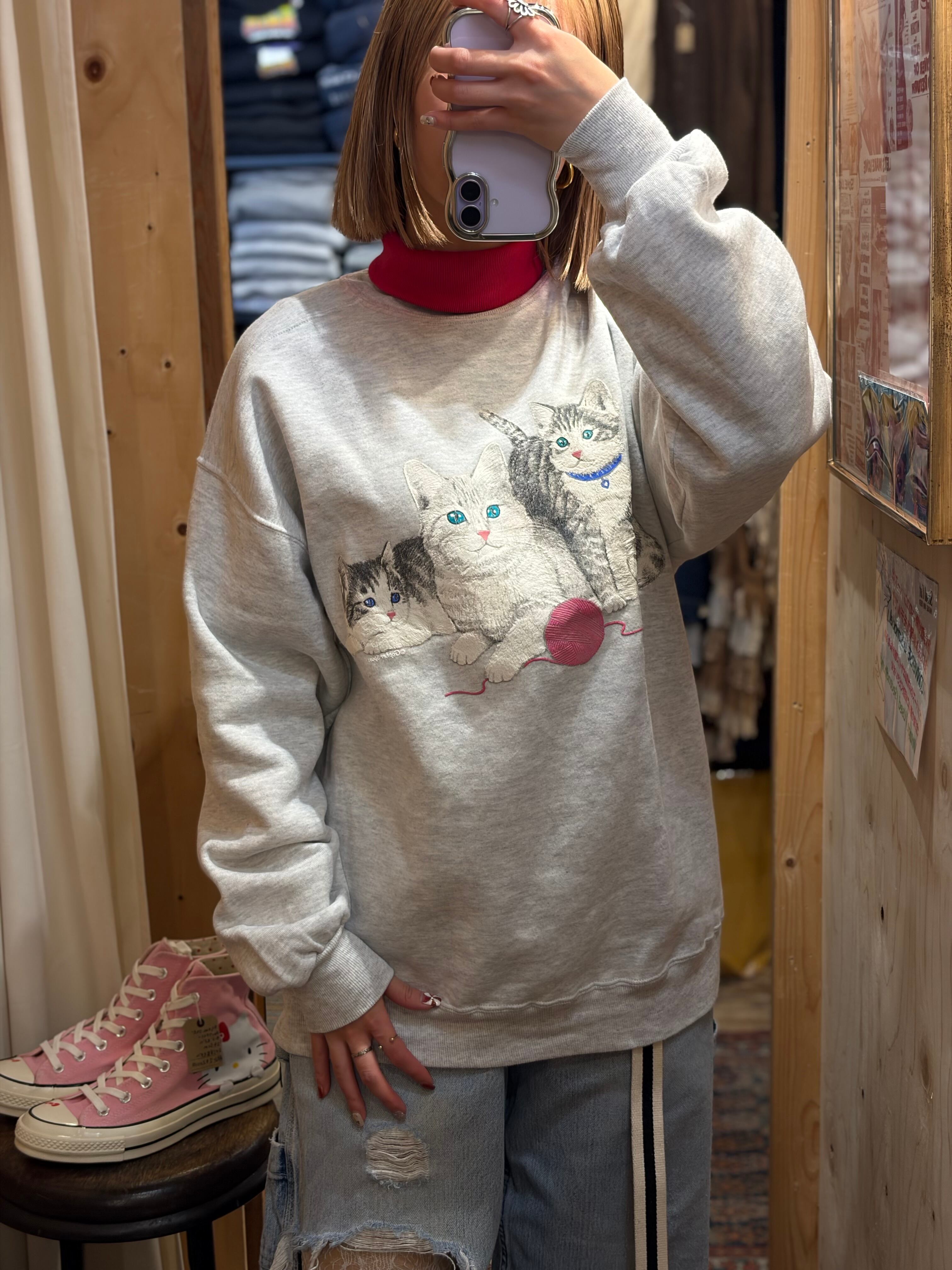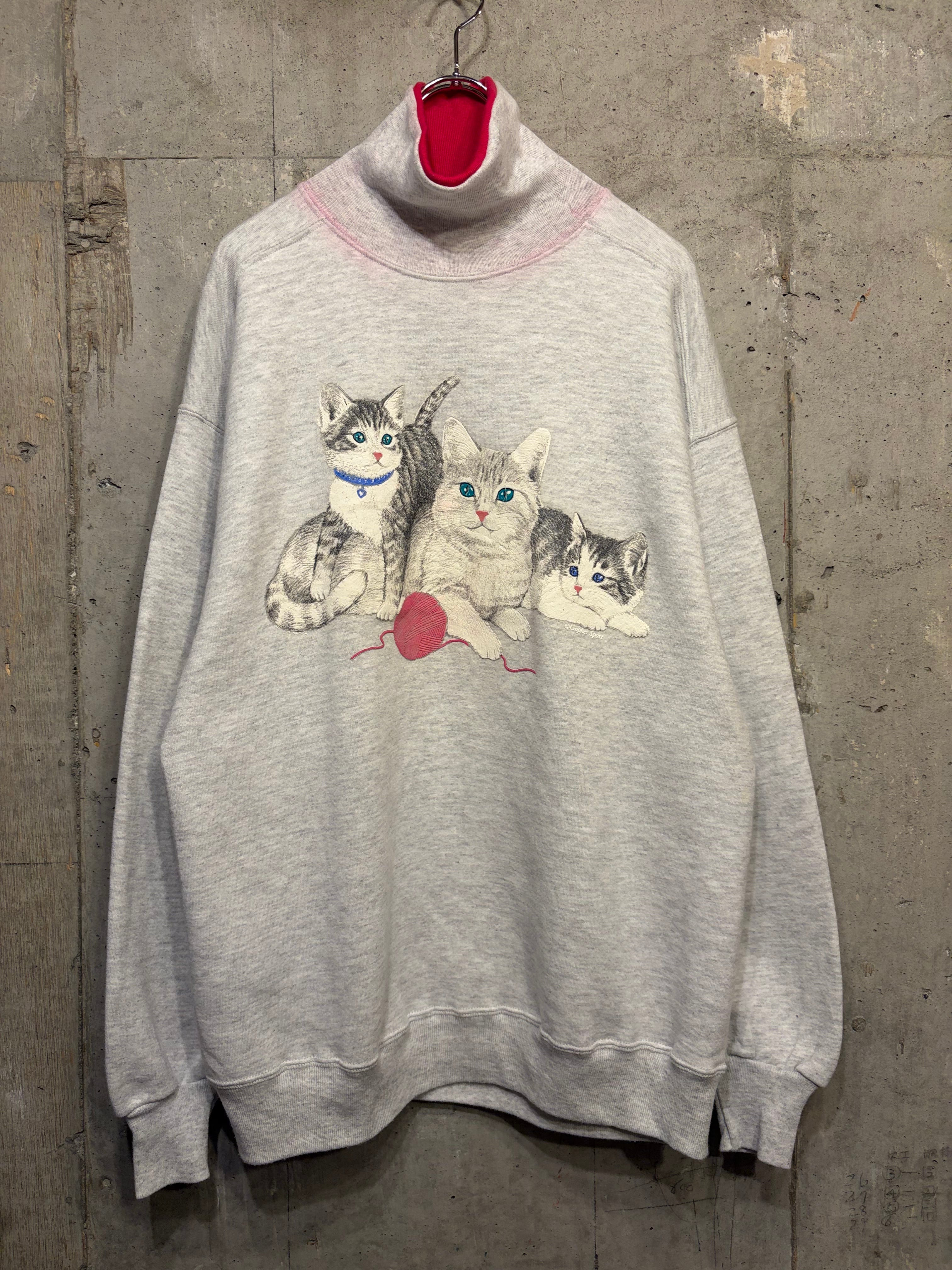 【L相当】猫ちゃん アニマル タートルネック スウェット 古着
