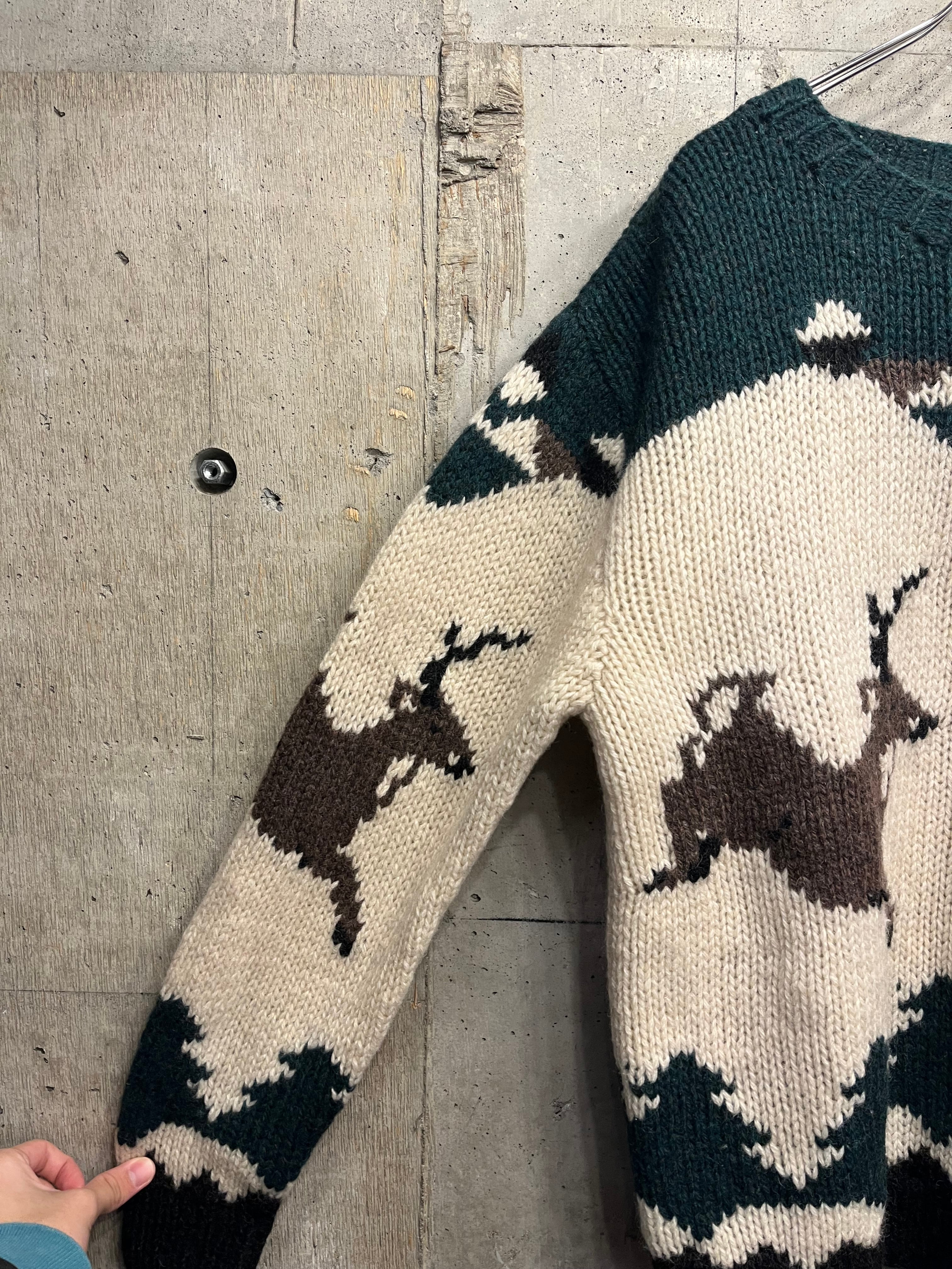【L】カウチンニット 古着 ウールリッチ シカさん