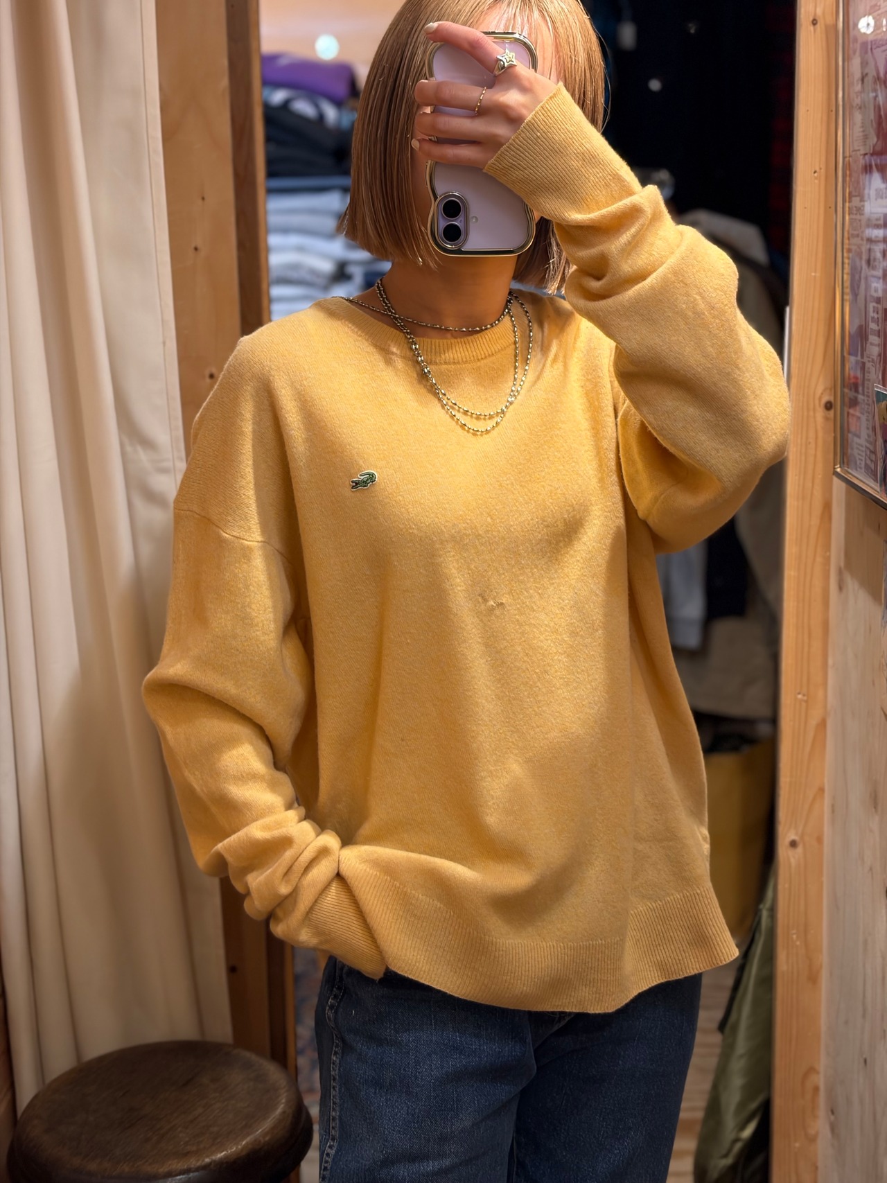 【L相当】ラコステニット 古着 無地ニット